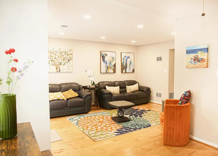 De 1-slaapkamer Charming 3Bd Alexandria House, 11 Miles To Dc, Nice Front View villa ligt op 3 km van Bradlick Shopping Center en biedt toegang tot verschillende attracties in de omgeving.